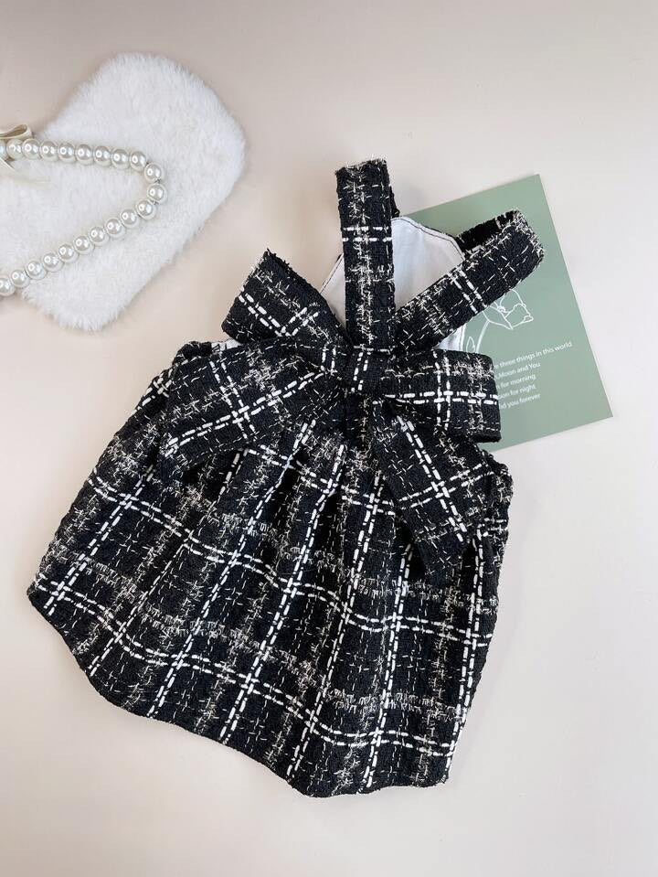 Turn heads with our black tweed dress, handmade in Melbourne for the fashion-forward pet. This timeless piece is perfect for cooler weather and adds an effortlessly polished touch to any occasion.