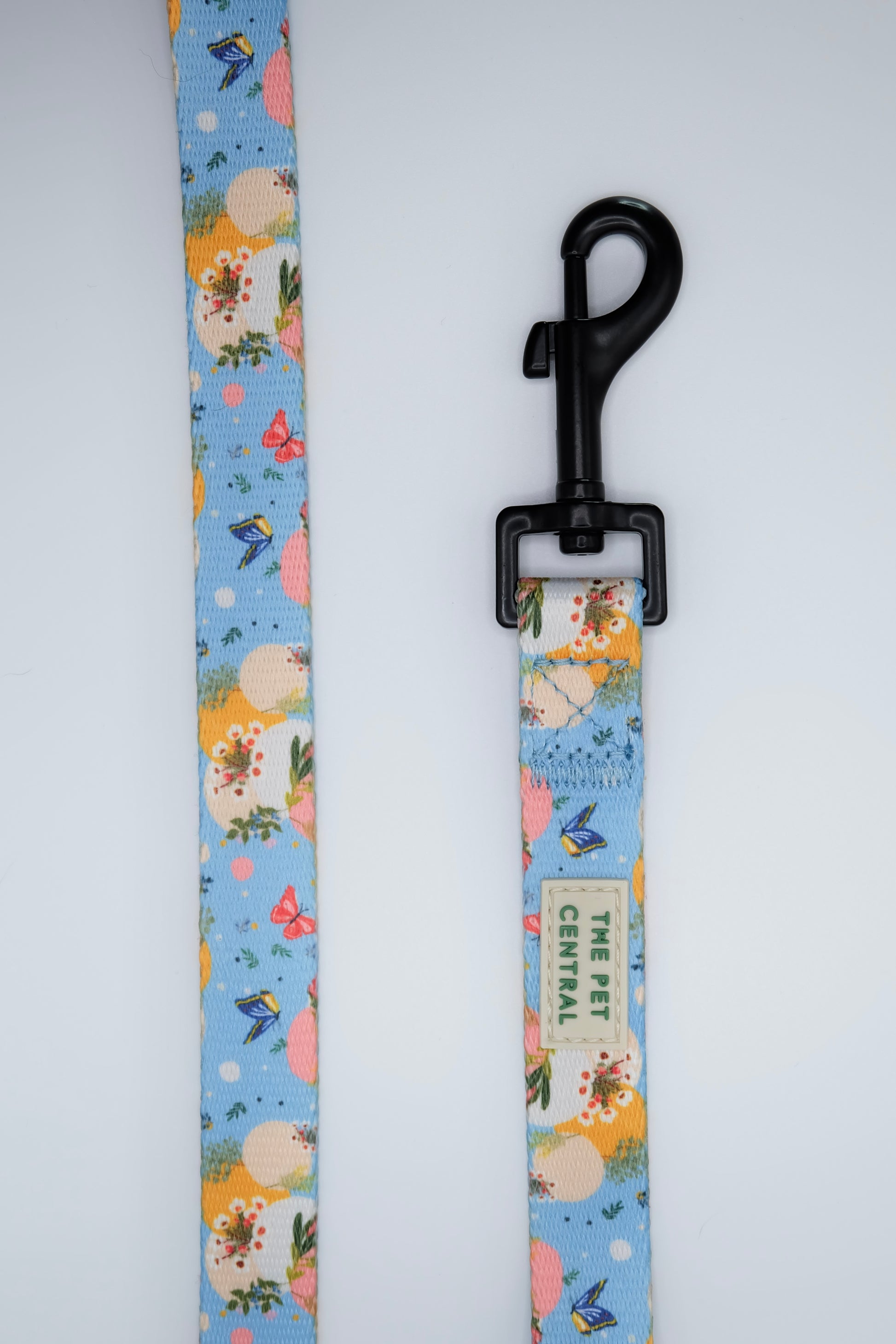 Elevate your pet’s daily walks with the Butterfly Fields Dog Lead, showcasing a stunning design of delicate butterflies and vibrant flowers on a soothing blue background. This lead combines elegance, durability, and comfort, ensuring enjoyable walks for you and your furry companion.