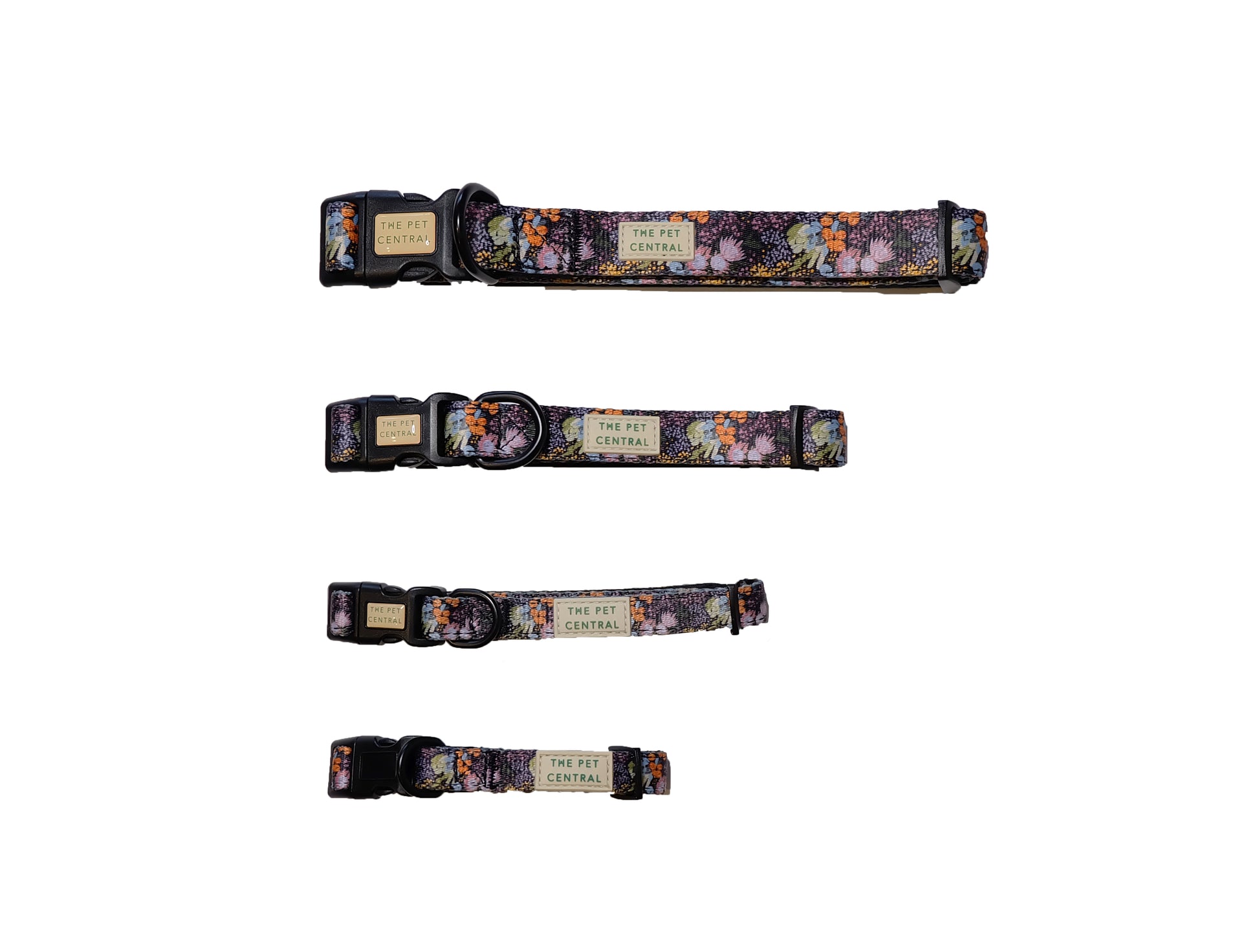 Elevate your pup's style with the Native Nighttime Dog Collar, a stunning gender-neutral accessory featuring a beautiful print of native Australian flowers. Crafted in collaboration with Melbourne-based designer Suki McMaster, this collar is designed to provide both fashion and function, ensuring comfort and durability for your furry friend.