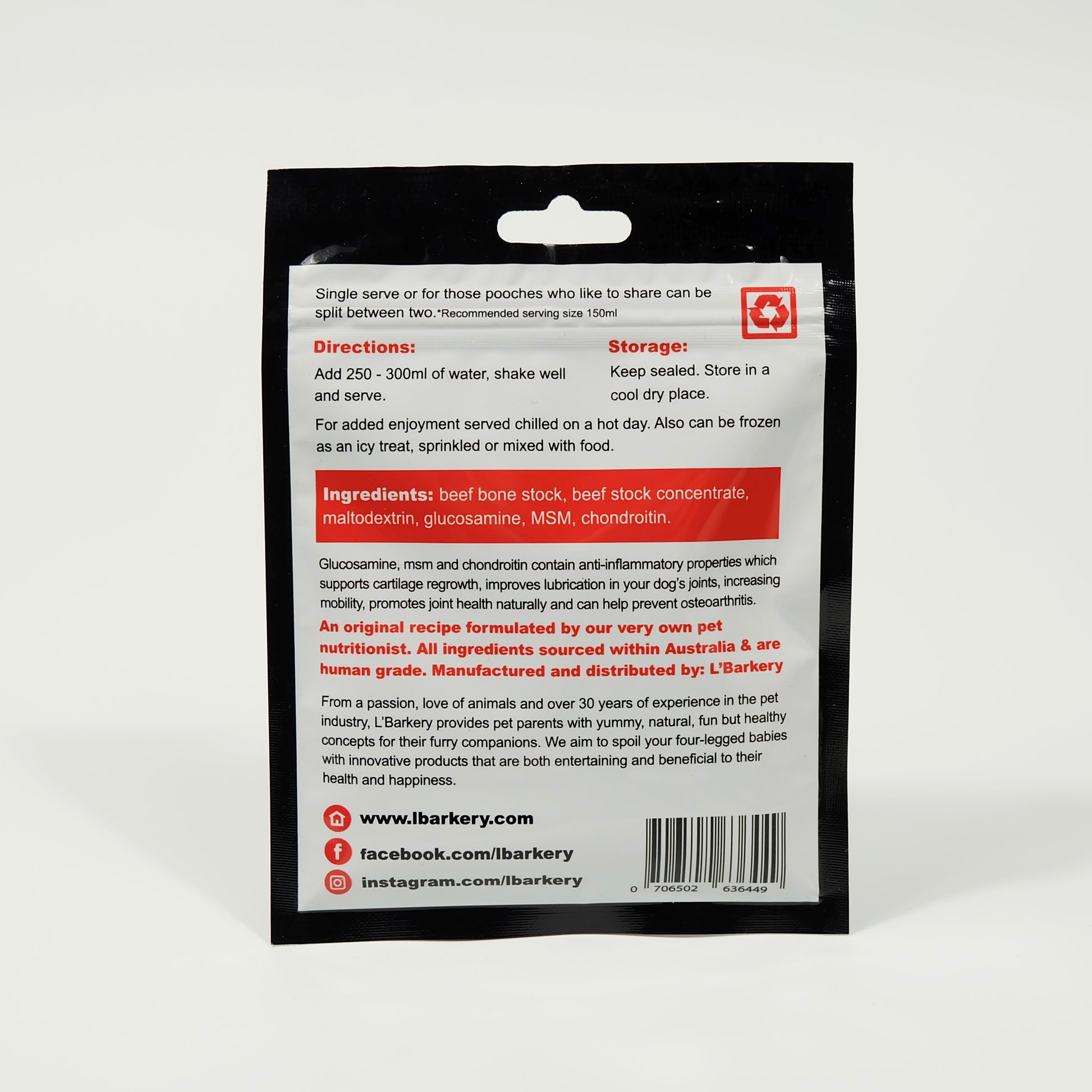 A Symphony of Flavour and Wellness: Indulge your pet's senses in the all-natural beef goodness that defines Paw Blonde. With every sip, they'll experience the heart-warming flavors of beef bone stock and beef stock concentrate. But that's not all – we've infused this drink with the goodness of glucosamine, a natural powerhouse that supports mobility and joint health.
