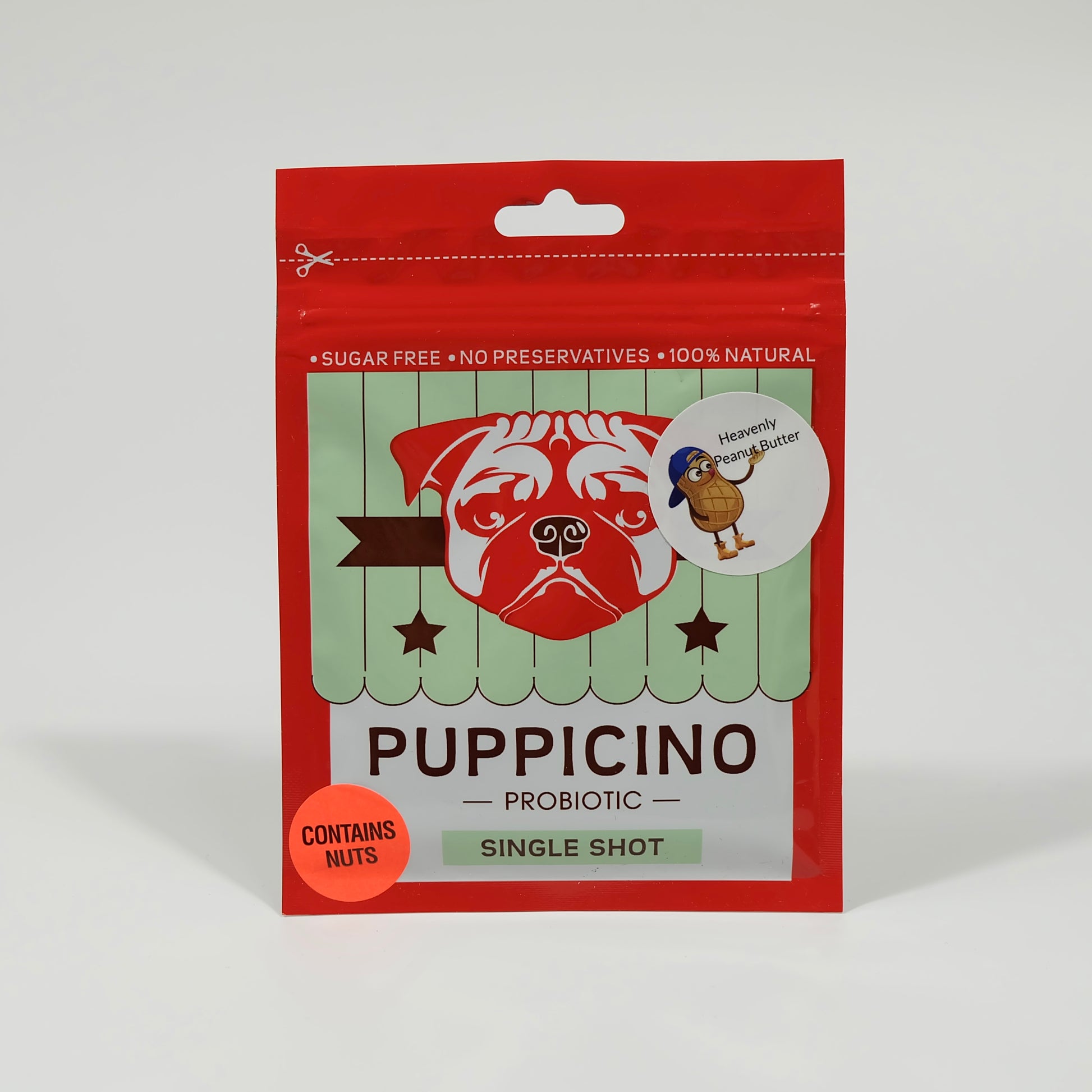 Indulge your beloved furry friend with the exquisite taste of Puppicino Peanut Butter, a single-shot, all-natural creamy probiotic drink that's sure to make tails wag with excitement.