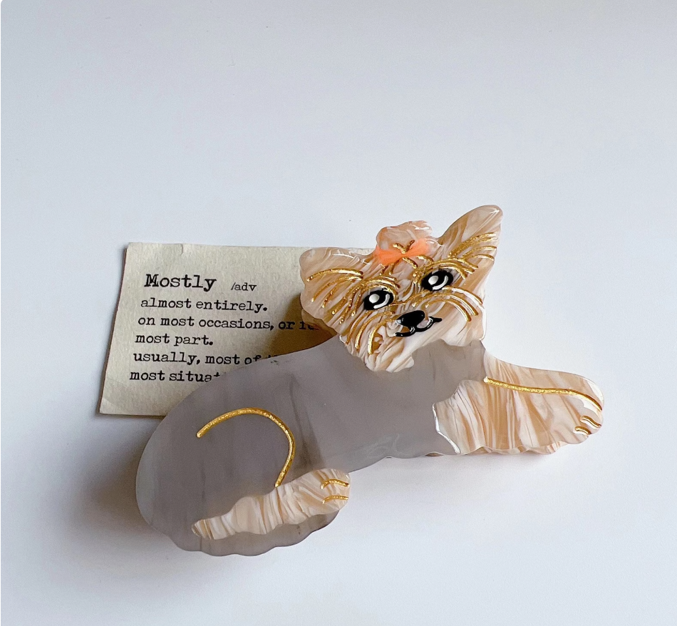 Add a touch of charm with our Acetate Animal Hair Claw, featuring delightful Yorkie designs! Perfect for any occasion, these handmade accessories vary in size and colour—check the pictures for details. Embrace unique style with every clip!